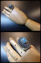 ナバホ Harrison・Jim インゴットシルバー フラワー×キングマンターコイズ付 リング25号