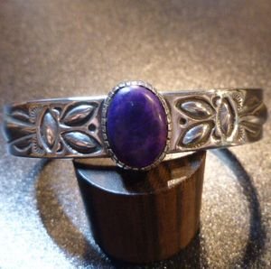 ナバホ Ray・Adakai ダブルスタンプワーク スギライト付 約1・3cm幅バングル約16〜17cm用