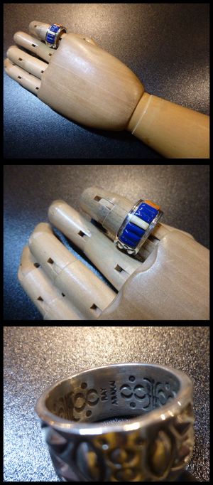 色カラフルなストーンインレイとスタンプワークで仕上がった、ナバホ族のリングになります。